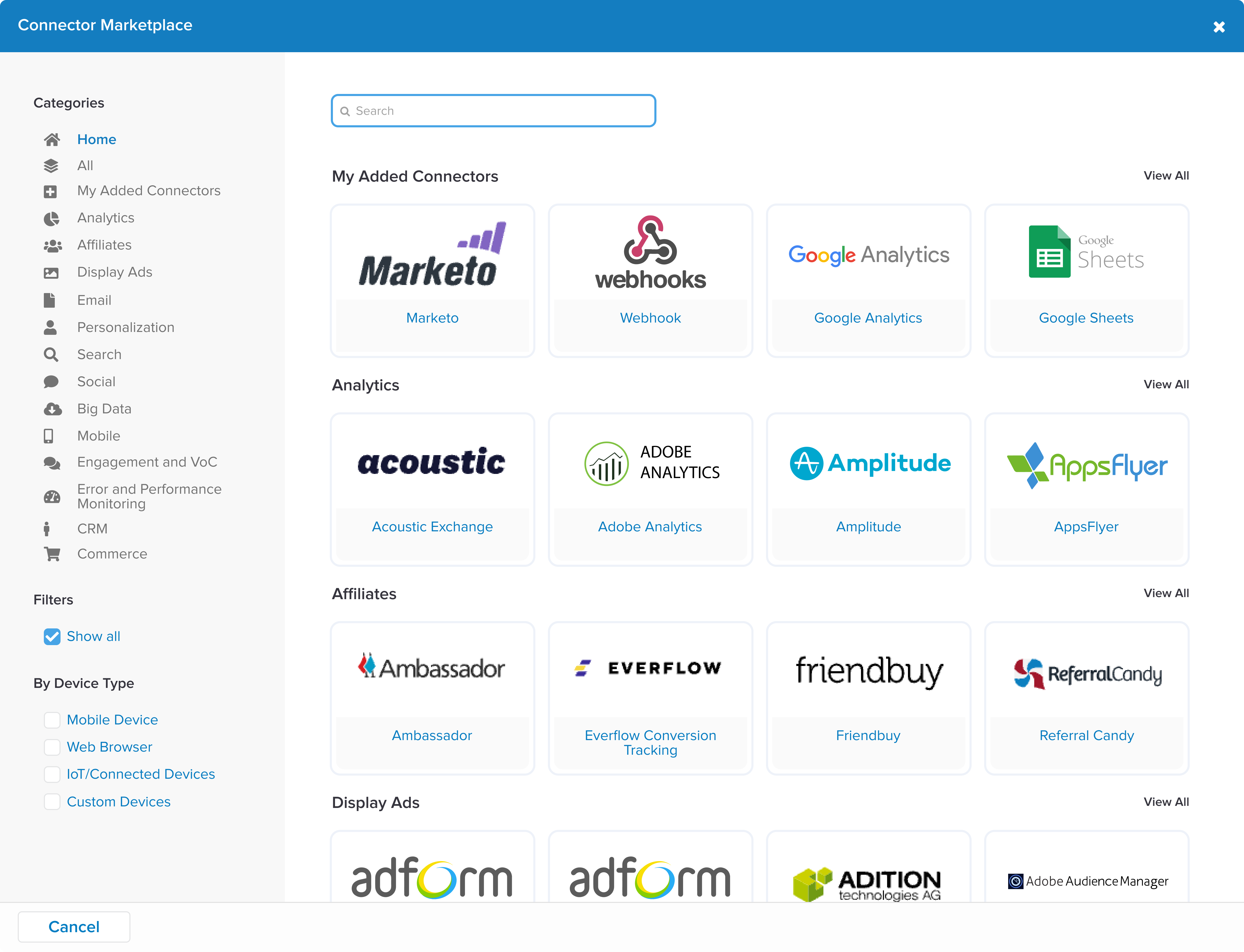 AudienceStream Customer Data Platform capabilities enable you to build a rich and actionable view of your customer as the basis for cross-channel segmentation and activation