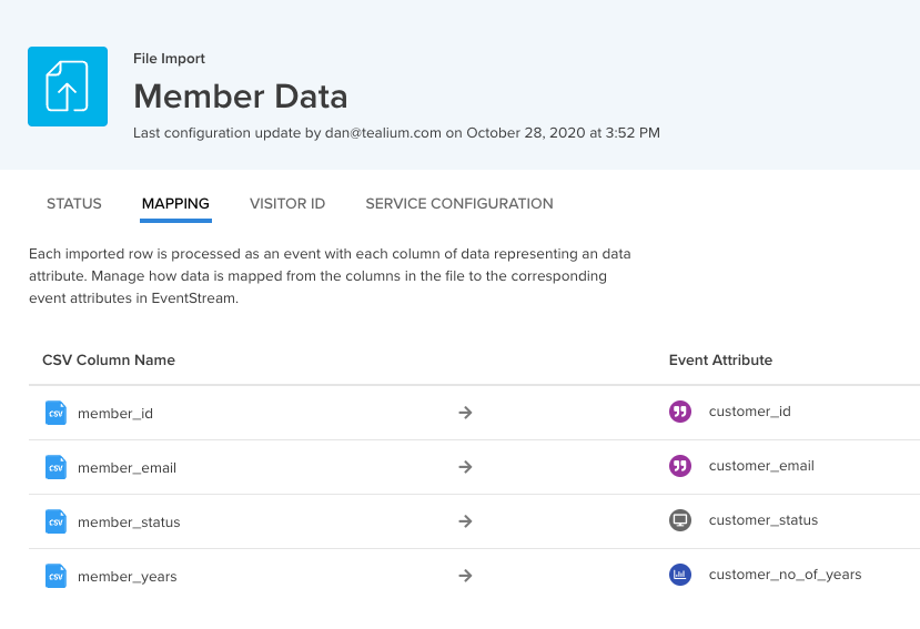When a packaged option isn’t available, and you’re not looking to custom build your own option with developer tools, file import is the ultimate option for flexibility. Use the Tealium server to connect to a file service (such as an Amazon S3 bucket), read the file, and import the data. Each imported row is processed as an event. After importing, the data can then be enriched, stitched to existing visitor profiles, and sent to other vendors. And with column mapping, event specs, and visitor ID mapping, we give you the tools to make sure the data is high quality.