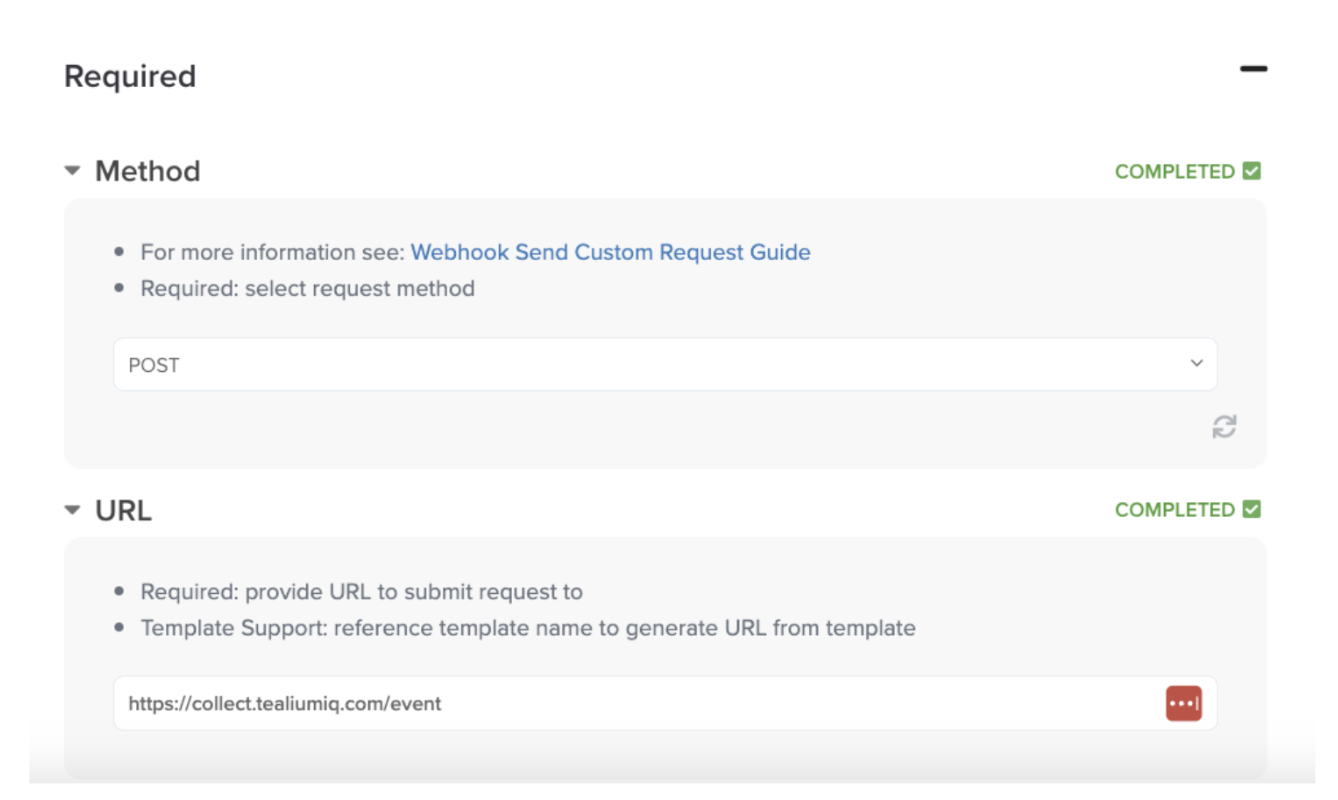 - Configure a POST request to the Tealium Collect API.
