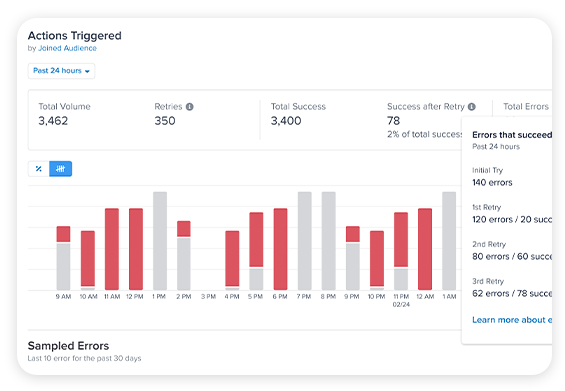 Créez des intégrations plus solides grâce à notre nouveau système automatisé de relance des flux de données ayant échoué. Améliorez la fiabilité de votre expérience client, même lorsque vos fournisseurs ont des difficultés.