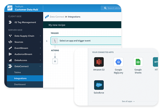 Tealium AudienceStream CDPは、顧客データの取り込み・配信のための1,300以上のすぐに使える連携機能を備えています。既存のテクノロジースタックの活用はもちろん、将来の拡張性までサポートします。