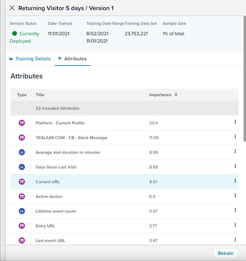 Tealium Predict MLは、カスタマイズされたモデルが予測の生成にどの顧客データポイントを使用しているか、さらには予測のための各データポイントの重要度を正確に示します。 成果につながる最も重要な行動の洞察を得ることで、より良い顧客体験を演出し、貴社の目標をより効果的に達成できるようになります。