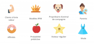 On peut segmenter les visiteurs, ou « personas », selon des critères communs, qu’il s’agisse de caractéristiques démographiques ou firmographiques, d’affinités, de comportements en ligne ou de la valeur que vous leur attribuez.